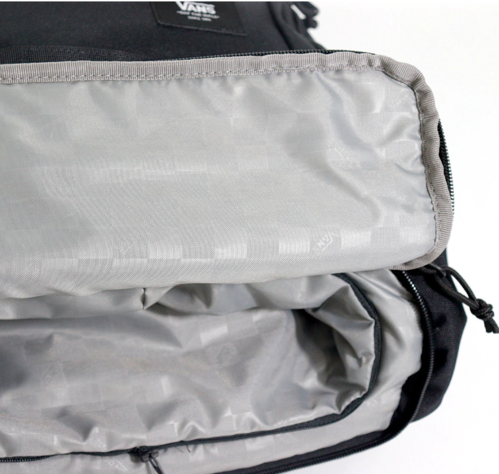 • Bolso com zíper com extensão de malha elástica para garrafa de água